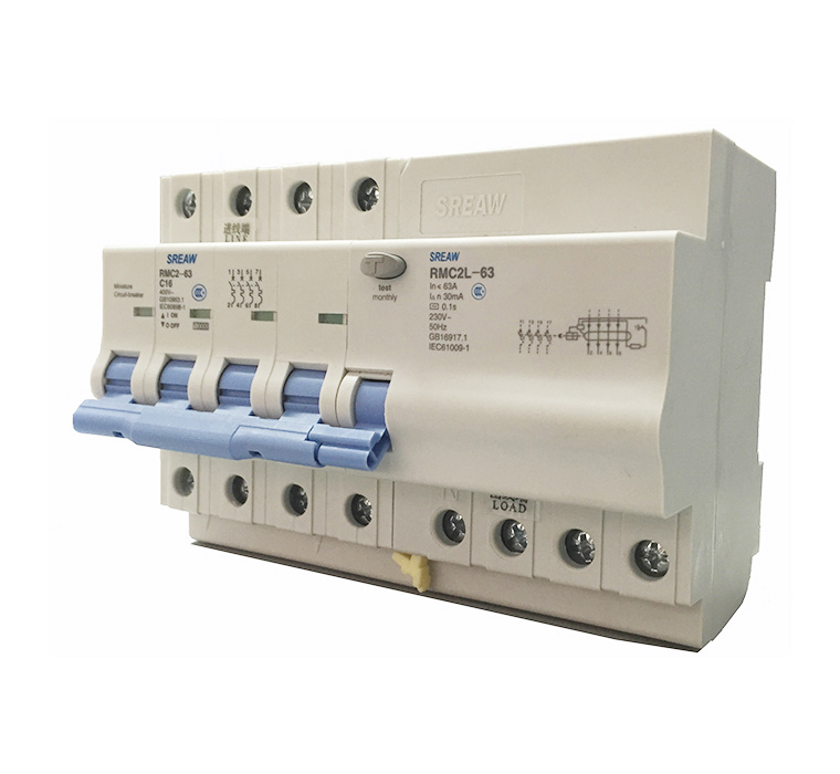 加裝于RMC2-63小型斷路器右側(cè),對(duì)對(duì)地漏電、人體直接或間接觸電等故障進(jìn)行保護(hù)