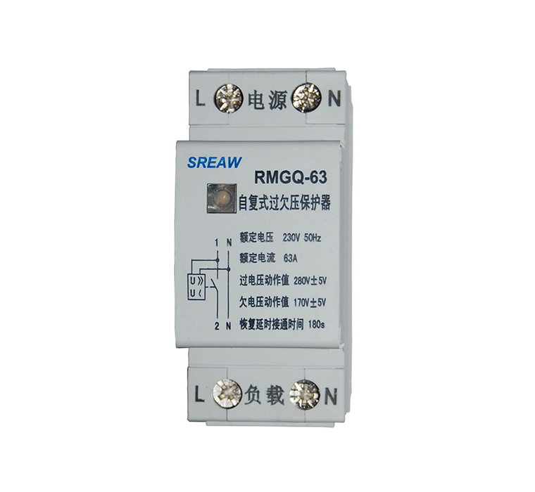 RMGQ-63自復式過欠壓保護器( 以下簡稱保護器) 適用于交流50Hz, 額定電壓為230V(1PN) ,400V(3PN/3P), 額定電流至63A的